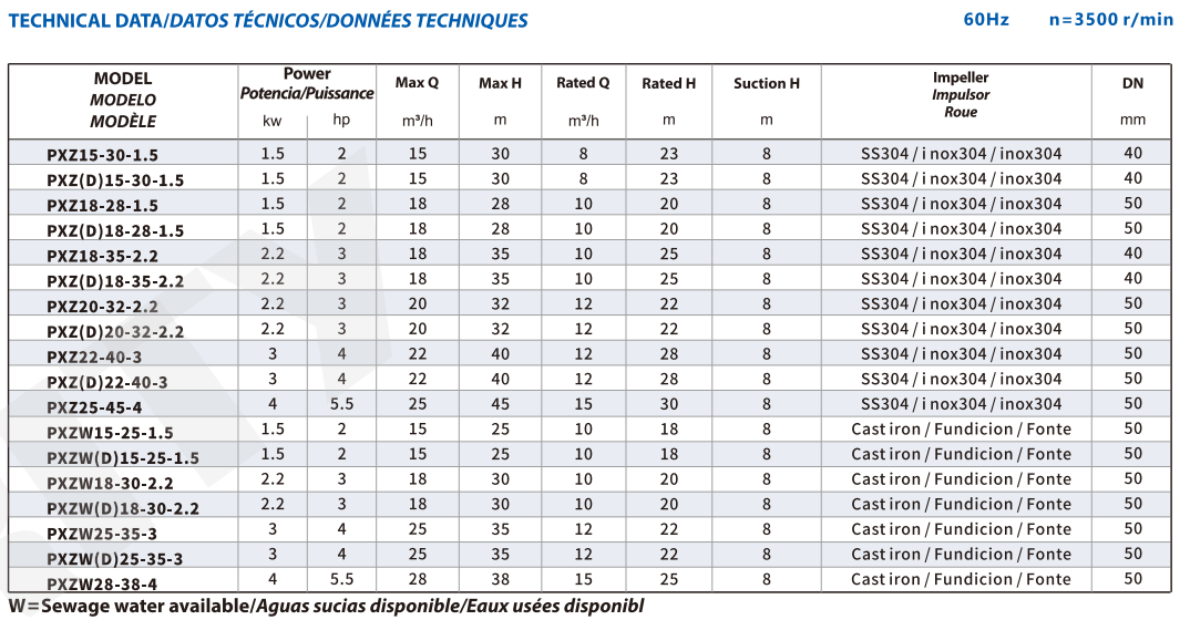كما توفر مضخات الطرد المركزي ذاتية التحضير Purity PXZ خيارات مرنة للمروحة لتلبية احتياجات التشغيل المتنوعة. ويمكن اختيار المروحة من الفولاذ المقاوم للصدأ أو الحديد الزهر، حسب متطلبات النظام. لتطبيقات المياه النظيفة، تأتي مضخات الطرد المركزي ذاتية التحضير مزودةً بمروحة من الفولاذ المقاوم للصدأ، مما يوفر مقاومة ممتازة للتآكل وكفاءة هيدروليكية مثالية. تتيح هذه القدرة على التكيف لمضخات الطرد المركزي ذاتية التحضير التعامل مع أنواع مختلفة من المياه وظروف التشغيل بكفاءة.