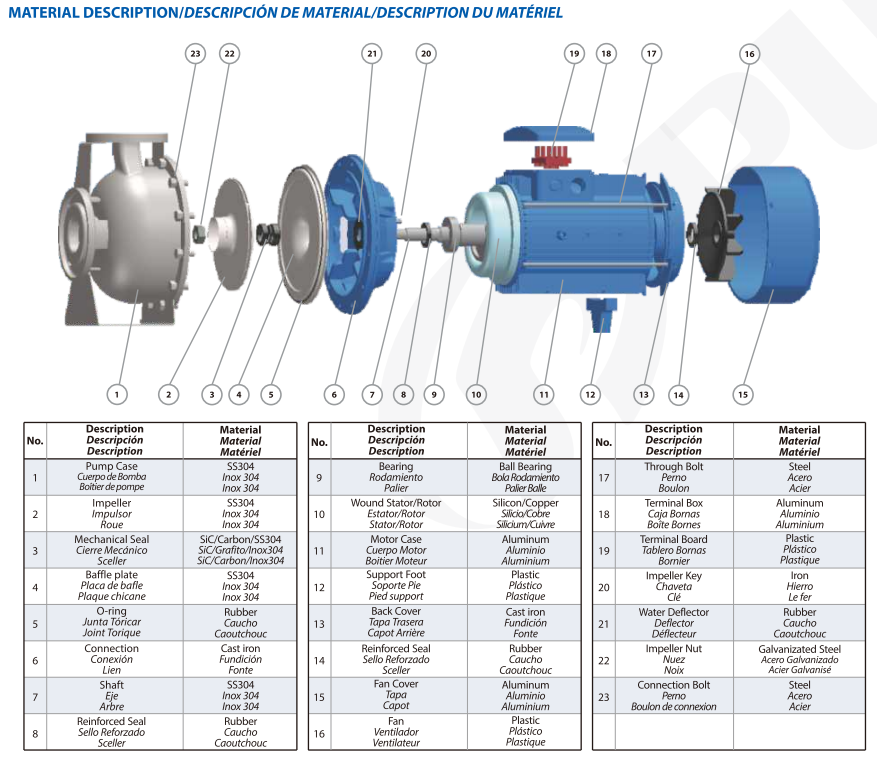 Las bombas centrífugas industriales de acero inoxidable Purity PZ incorporan un robusto motor con bobinado de cobre esmaltado de clase F, que ofrece una excelente resistencia térmica y un rendimiento estable incluso durante largos periodos de funcionamiento continuo. Con un grado de protección IP55, el motor está protegido contra la entrada de polvo y las salpicaduras de agua, lo que le permite funcionar de forma fiable en entornos exigentes o exteriores. Además, las bombas centrífugas industriales de acero inoxidable están equipadas con rodamientos NSK de alta calidad y un sello mecánico duradero, diseñados para reducir significativamente el desgaste y prolongar su vida útil.