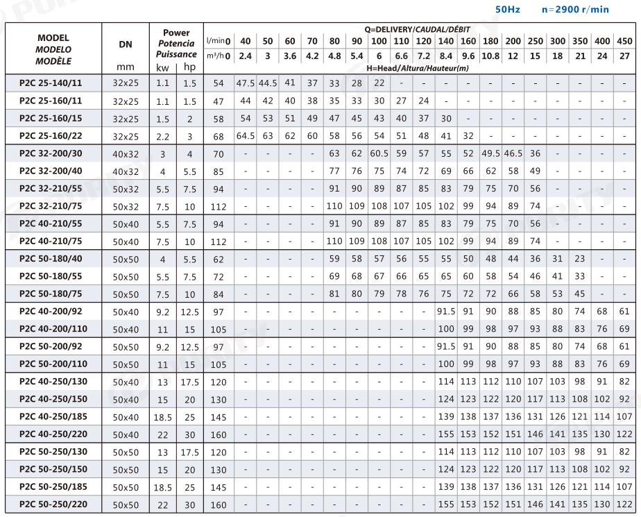 La serie P2C adopta un diseño avanzado de bomba centrífuga de doble impulsor, que mejora significativamente la eficiencia hidráulica y el rendimiento de presión en comparación con las estructuras convencionales de un solo impulsor. Esto hace que la bomba sea especialmente adecuada para el suministro de agua, el aumento de presión, los sistemas de circulación y la transferencia de fluidos industriales donde se requiere una mayor presión en un espacio reducido. Como bomba centrífuga horizontal de una sola etapa, la P2C ofrece una estructura sencilla, fácil mantenimiento y un funcionamiento estable.