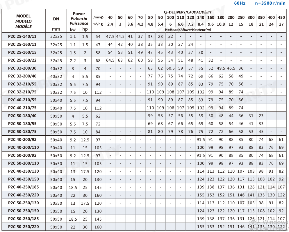 Desde el punto de vista eléctrico y de protección, la bomba P2C está equipada con cable de cobre esmaltado de clase F y cuenta con una clasificación de protección IP55, lo que garantiza un excelente aislamiento, una gran resistencia al polvo y al agua, y un funcionamiento estable incluso en condiciones de trabajo exigentes. Estas características contribuyen a una mayor vida útil y un rendimiento constante, incluso en entornos difíciles.