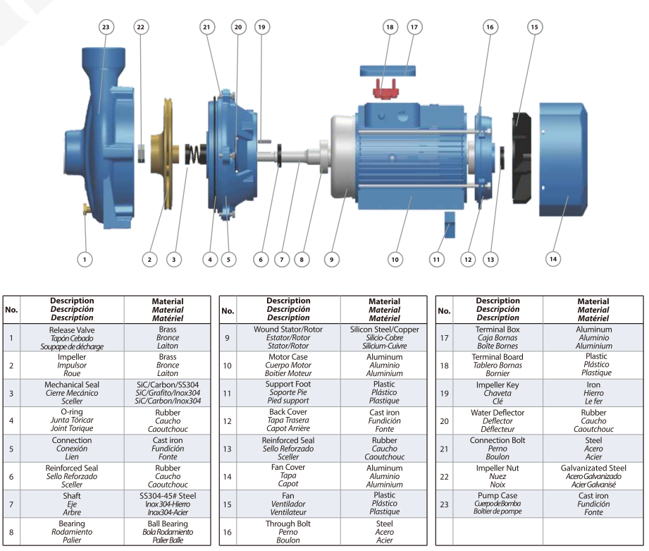 Para satisfacer diversas necesidades de aplicación, las bombas centrífugas horizontales Purity PC están disponibles en múltiples configuraciones de caudal, lo que permite a los usuarios seleccionar el modelo más adecuado según las condiciones de trabajo específicas. El impulsor se puede personalizar con material de hierro fundido o latón, lo que proporciona flexibilidad para manejar diferentes características de fluidos y entornos operativos. Los impulsores de hierro fundido son ideales para la transferencia general de agua y aplicaciones industriales, mientras que los impulsores de latón ofrecen una mayor resistencia a la corrosión para agua más limpia o sistemas especializados.