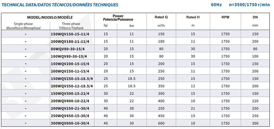 La carcasa de la bomba sumergible para aguas residuales Purity WQV está fabricada con hierro fundido HT250 de alta resistencia, que ofrece una resistencia excepcional y una excelente resistencia al desgaste. Este diseño robusto garantiza que la bomba pueda soportar fluidos abrasivos y corrosivos durante largos períodos, manteniendo la integridad estructural y la durabilidad a largo plazo. La combinación de materiales de alta calidad e ingeniería de precisión permite que la bomba sumergible para aguas residuales funcione continuamente con un riesgo mínimo de fallas mecánicas, lo que la hace ideal para plantas de tratamiento de aguas residuales, sistemas de alcantarillado municipales y aplicaciones de efluentes industriales.
