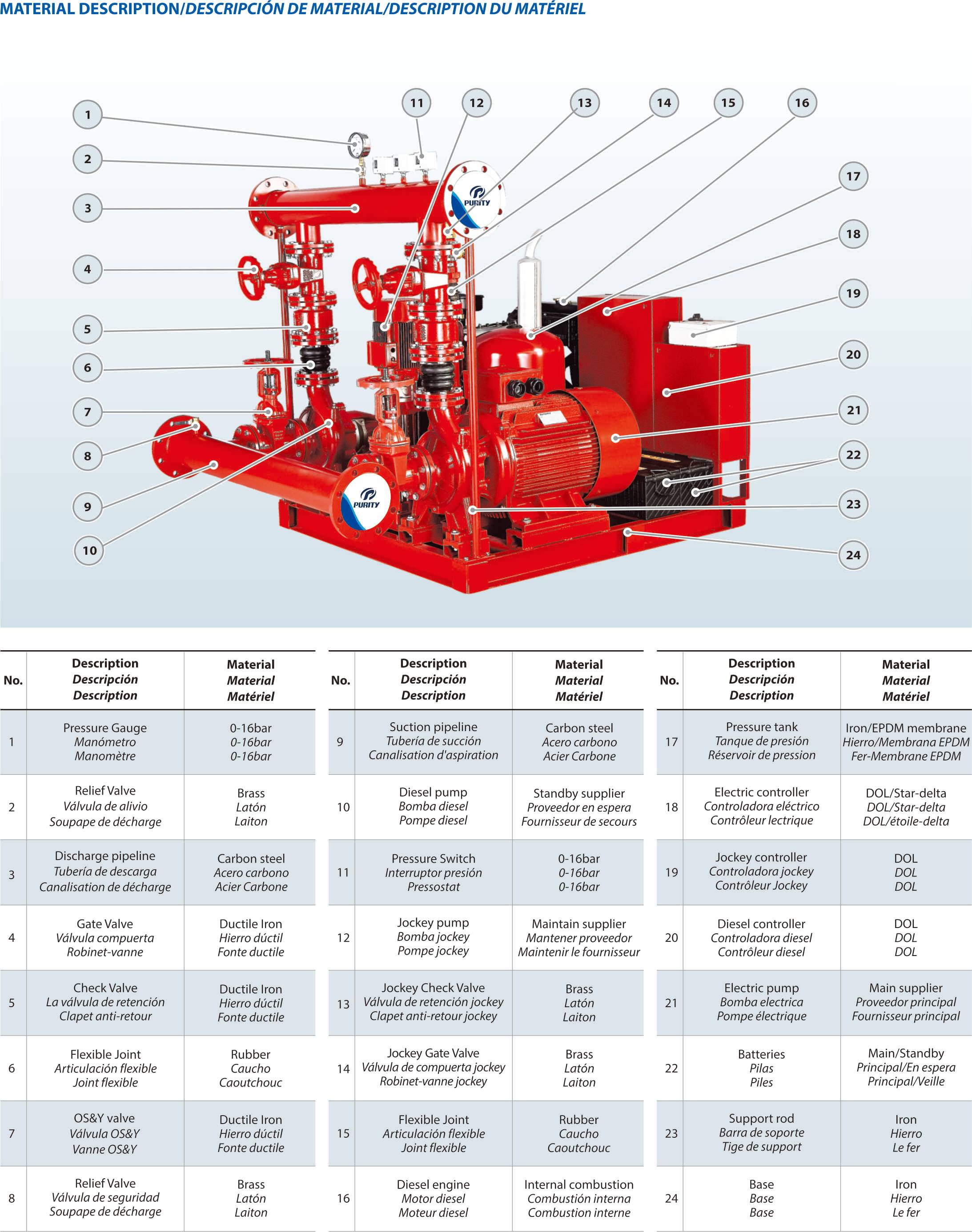 La eficacia y eficiencia de las operaciones de extinción de incendios dependen en gran medida de un suministro de agua fiable y sólido. Las unidades de bomba contra incendios PEEJ han cambiado las reglas del juego en la extinción de incendios, proporcionando presión de agua suficiente y oportuna para controlar los incendios rápidamente. Los conjuntos de bombas contra incendios PEEJ están equipados con tecnología de punta y características avanzadas que les permiten enfrentar los desafíos de la protección contra incendios moderna. Su diseño robusto lo hace adecuado para su uso en una variedad de escenarios de incendio, desde edificios residenciales hasta complejos comerciales, instalaciones industriales y más. Equipado con un motor de alto rendimiento, puede suministrar rápidamente la presión de agua necesaria para garantizar que la llama se apague rápidamente. Una de las características sobresalientes de las bombas contra incendios PEEJ es su capacidad de proporcionar un suministro continuo de agua incluso cuando la fuente principal de agua está dañada o es inaccesible. Equipado con un mecanismo autocebante, puede extraer agua de fuentes alternativas como estanques, lagos o tanques portátiles. Esta flexibilidad lo hace indispensable en áreas con infraestructura hídrica limitada o en situaciones de emergencia donde las fuentes de agua tradicionales no están disponibles.