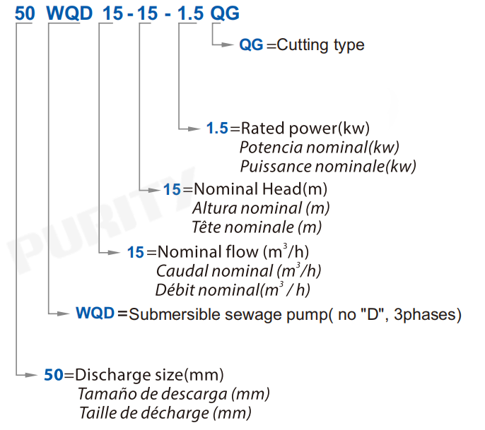 La bomba sumergible para aguas residuales Purity WQQG está especialmente diseñada para el manejo eficiente y confiable de aguas residuales con fibras e impurezas sólidas. Cuenta con un impulsor de corte de borde afilado que, en conjunto con una placa de corte, realiza una potente acción de corte, triturando eficazmente los materiales fibrosos y evitando su obstrucción. El impulsor, con un ángulo de curvatura hacia atrás, no solo mejora la eficiencia hidráulica, sino que también reduce significativamente el riesgo de obstrucción en la tubería de descarga, garantizando un funcionamiento continuo y sin interrupciones.
